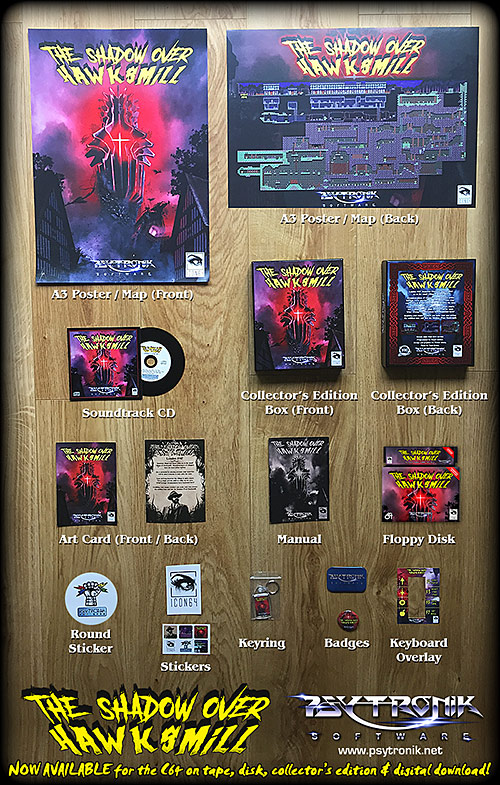 THE SHADOW OVER HAWKSMILL is NOW AVAILABLE to order on C64 tape, disk and digital download.